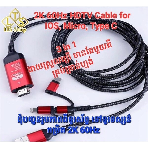 2K 60Hz HDTV Cable HDMI to Type C, Micro, iOS