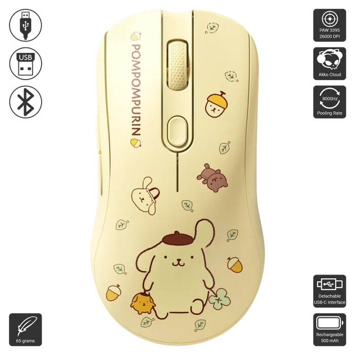 Akko x Pompompurin special limited edition collaboration, Pro Gaming Mouse equipped with the PAW3395 sensor