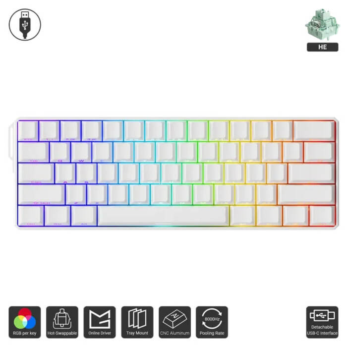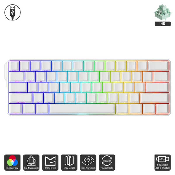 - FUN60 Series Magnetic Keyboard features ARGB(addressable RGB) with individually controlled LEDs for smooth, flicker-free lighting