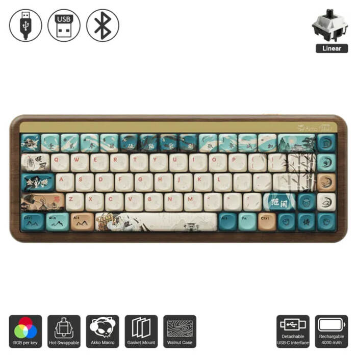 MU01 Joy of Life combines classic elements from "Joy of Life" with modern technology, designed to bring a unique typing experience to every fan of "Joy of Life" and ancient style enthusiasts. Whether for work or play, this keyboard will be the most eye-catching item on your desk.
