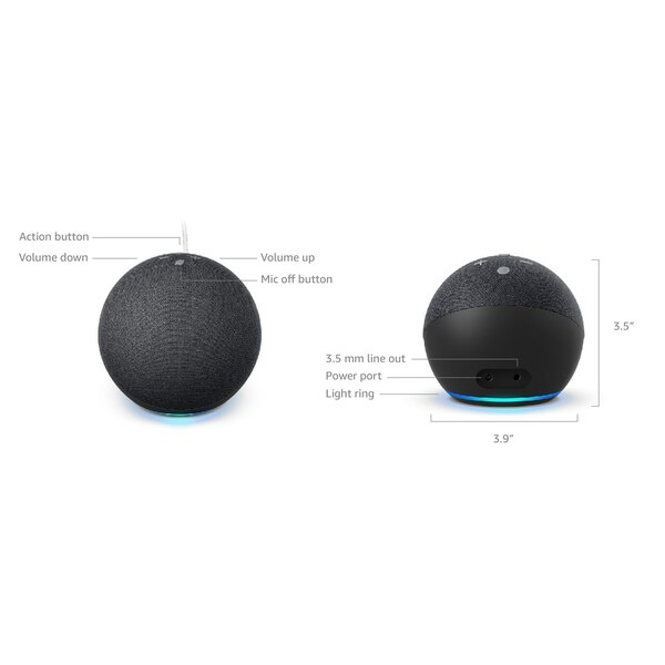 All-new Echo Dot 4th Generation Smart speaker with Alexa. Voice control your entertainment - Stream songs from Amazon Music, Apple Music, Spotify, SiriusXM, and others. Ready to help - Ask Alexa to tell a joke, play music, answer questions, play the news, check the weather, set alarms, and more. Control your smart home - Use your voice to turn on lights