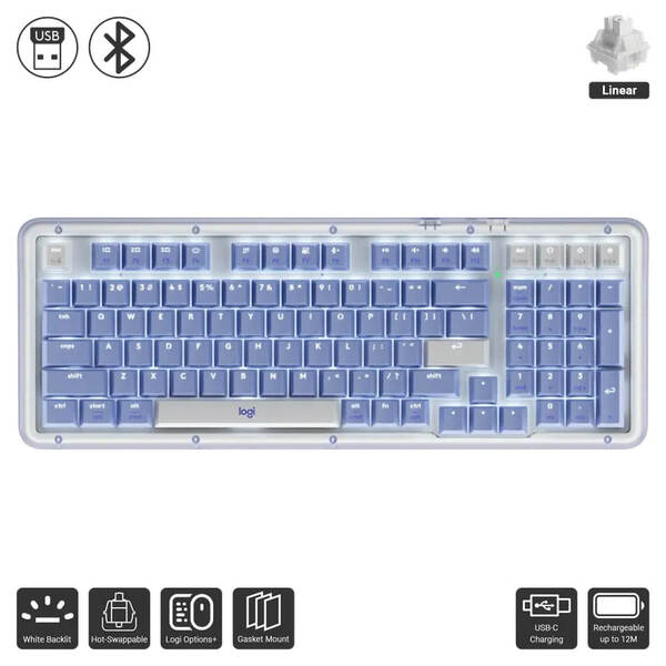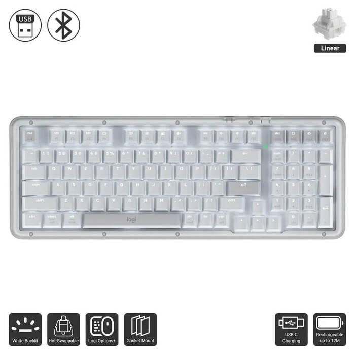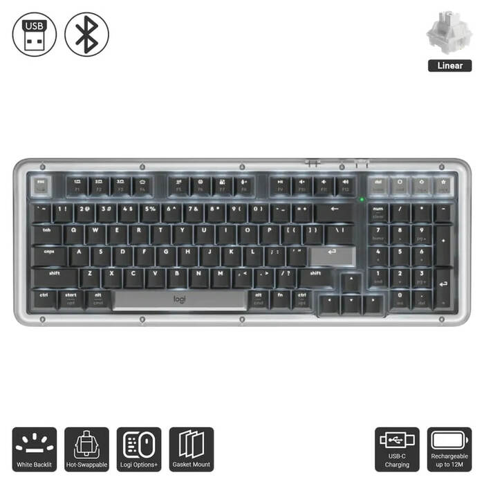 Logitech wireless mechanical keyboard with UniCushion gasket mount for excellent sound and typing experience