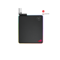 ROG Balteus Qi wireless-charging RGB gaming mouse pad with 15-zone Aura Sync lighting, portrait hard surface, USB passthrough and nonslip base.