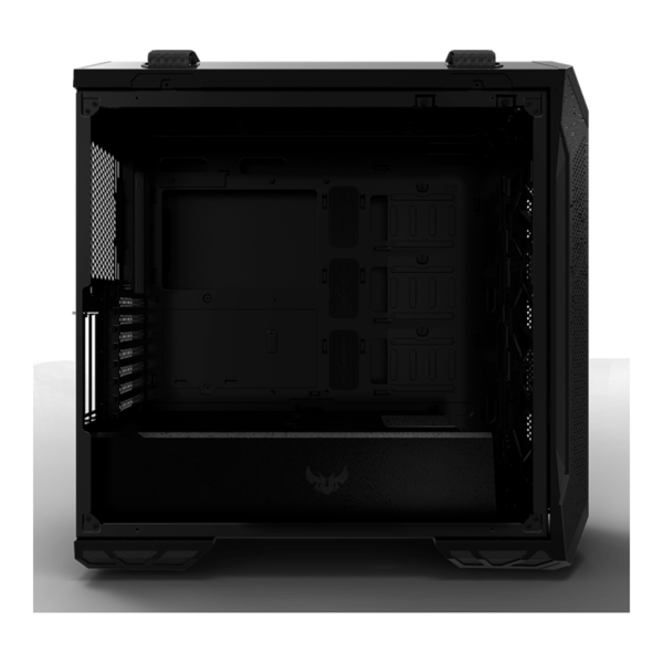 Designed to be Noticed: Metal front panel with custom TUF Gaming spatter pattern, and 4mm-thick, smoked, tempered-glass side panel to showcase your build’s internals.