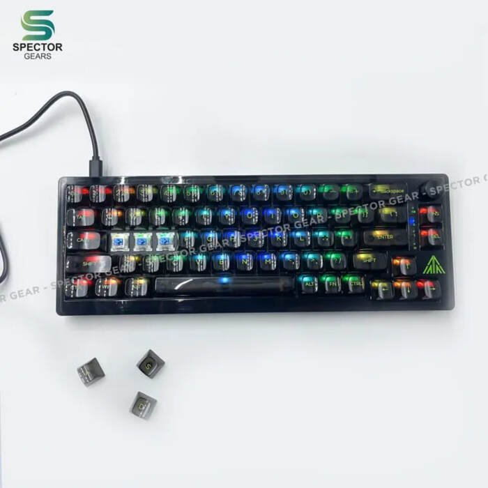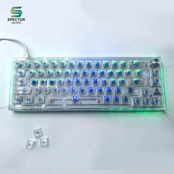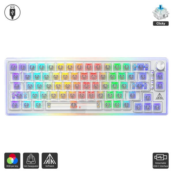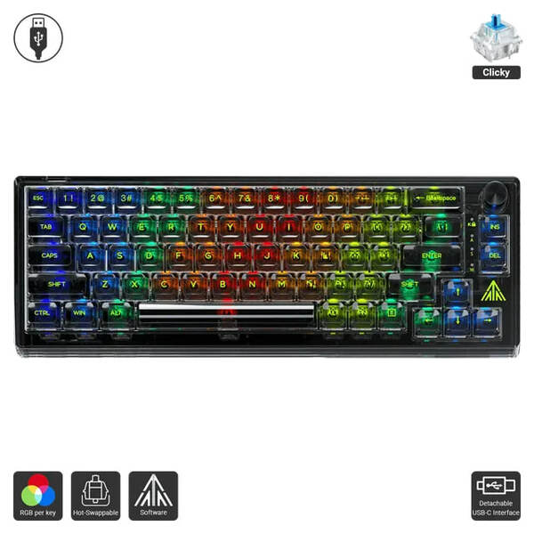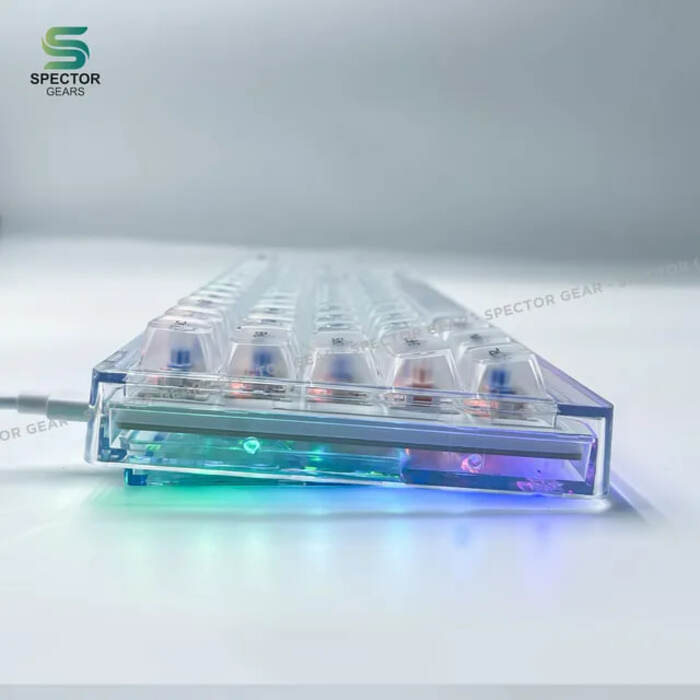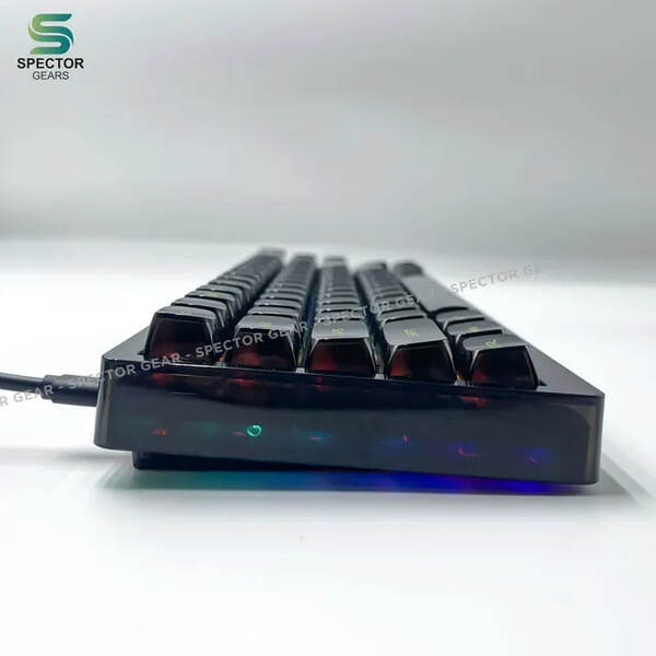 Compact mechanical gaming keyboard with hot-swappable switch, customizable RGB per key backlighting and full transparent cover