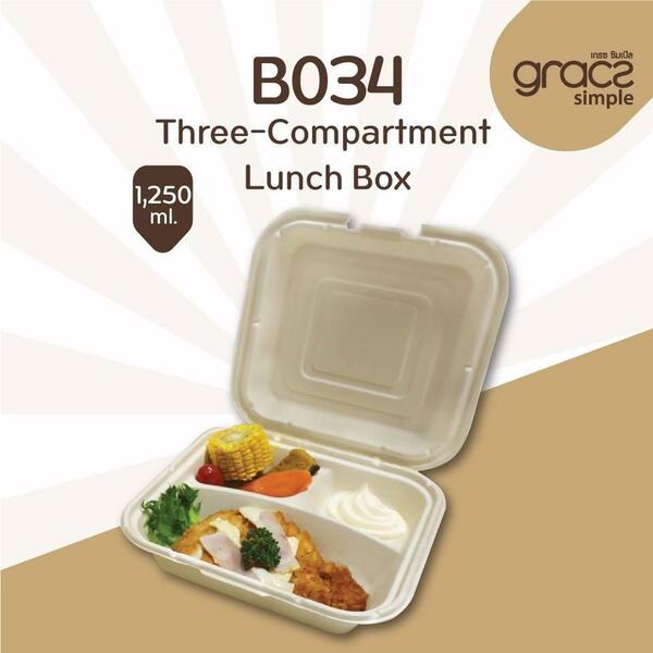 B034 Three-Compartment Lunch Box 1250ml 50PCS