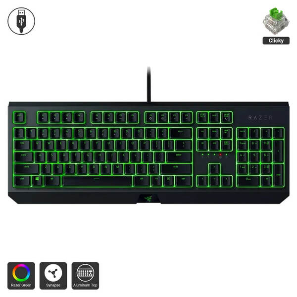 - Signature Mechanical Switch for Gaming: Razer Green switch technology provides a satisfying clicky sound with 50 G of actuation force, ideal for typing and gaming requiring the highest accuracy