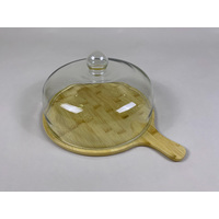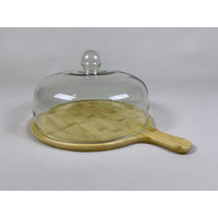 Cake Stand (L) w/Wooden Tray, Handle & Glass Dome Dia32xH21cm