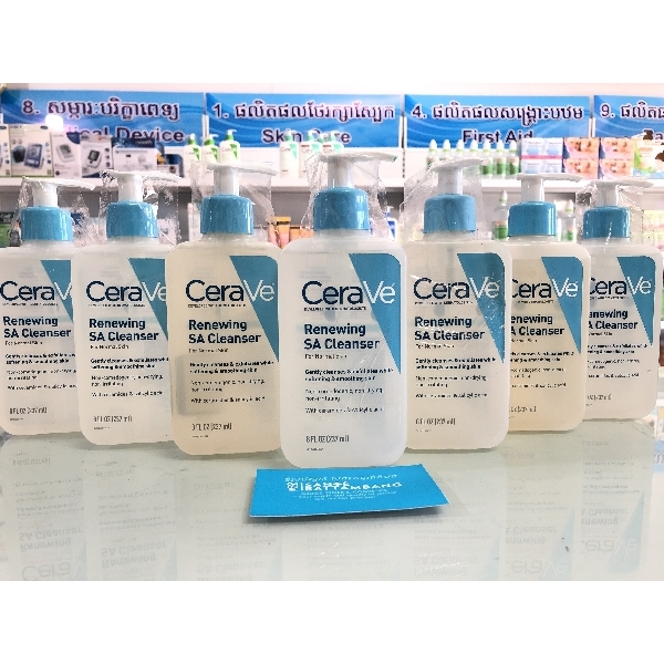 ជាហ្វូមលាងមុខដែលមានជាតិ Salicylic acid ជួយជម្រុះកោសិកាចាស់ ងាប់ចោល សម្អាតជាតិដី ធូលីជាតិ កខ្វក់លើ ស្បែកមុខ ដោយមិនធ្វើឲ្យស្បែកមុខស្ងួត ឬតឹងពេកទេ។ មានជាតិ Ceramides ជួយពង្រឹងរនាំងការពារស្បែក។ Hyaluronic acid & Niacinamide ជួយផ្តល់សំណើមខ្ពស់ អាចប្រើបានទាំងមុខ និងខ្លួន។ មិនបង្កឲ្យស្ទះរន្ធរោម មិនមានក្លិនដែលបង្ករឲ្យស្បែកប្រតិកម្ម។ ជាហ្វូមលាងមុខដែលមានជាតិ Salicylic acid ជួយជម្រុះកោសិកាចាស់ ងាប់ចោល សម្អាតជាតិដី ធូលីជាតិ កខ្វក់លើ ស្បែកមុខ ដោយមិនធ្វើឲ្យស្បែកមុខស្ងួត ឬតឹងពេកទេ។ មានជាតិ Ceramides ជួយពង្រឹងរនាំងការពារស្បែក។ Hyaluronic acid & Niacinamide ជួយផ្តល់សំណើមខ្ពស់ អាចប្រើបានទាំងមុខ និងខ្លួន។ មិនបង្កឲ្យស្ទះរន្ធរោម មិនមានក្លិនដែលបង្ករឲ្យស្បែកប្រតិកម្ម។ Gentle exfoliation for normal skin, no harsh microbeads. Salicylic acid foaming gel cleanser for smooth skin. A gentle salicylic acid cleanser can help exfoliate and smooth your skin while also effectively removing oil and dirt, sweeping away dead cells, and softening rough skin—without leaving skin feeling dry. Cleansing with CeraVe Renewing SA Cleanser, a salicylic acid cleanser enhanced with barrier-restoring ingredients like ceramides, can help keep moisture in while keeping irritants out. CeraVe Renewing SA Cleanser provides gentle, non-irritating exfoliation without harsh microbeads that can scratch your skin. Suitable for use on your face and body as well as acne-prone skin, our salicylic acid cleanser not only exfoliates the skin, but with three essential ceramides, hyaluronic acid and niacinamide, it also helps soften and smooth the skin without disrupting its protective barrier. This formula is also non-comedogenic, fragrance-free and enriched with antioxidant vitamin D.