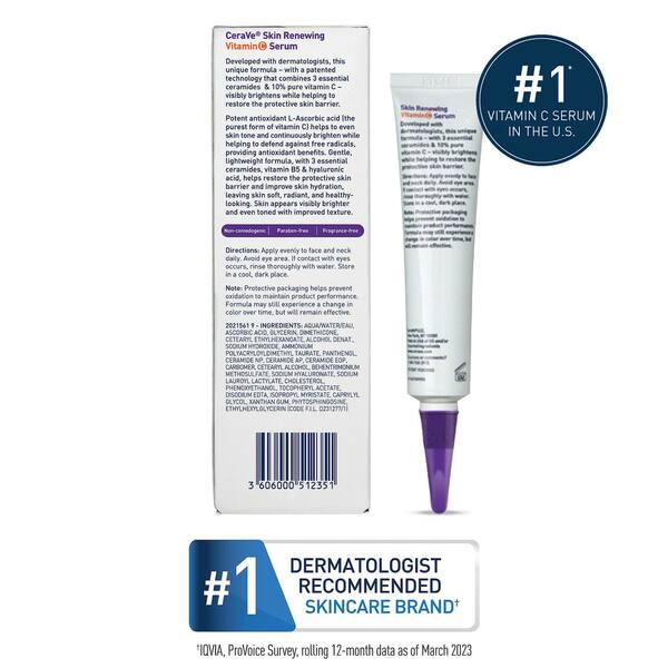 CeraVe Skin Renewing Vitamin C Serum pure Vitamin C 10% , hyaluronic acid, and Vitamin B5