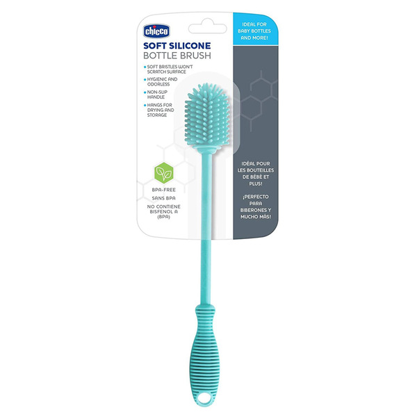 The design of our silicon bottle brush helps remove food residues even in those parts of bottle that are difficult to reach. It is hygienic and offers ease of cleaning to moms. Bottle brush can easily be hung anywhere in the kitchen after use. Extra-soft, anti scratch bristles of the silicon bottle brush allows thorough cleaning of feeding bottles and accessories without scratching or damaging the baby objects. ច្រាសលាងដបទឹកដោះគោ ទន់ល្អ អនាម័យ ងាយសម្អាត និងសម្អាតបានល្អ។