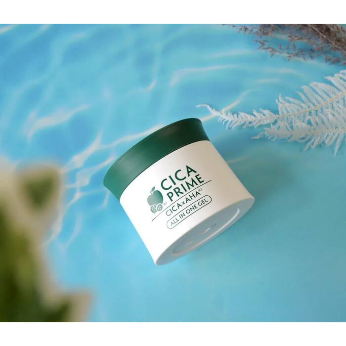Cica Prime - All in One Gel គឺជាការរួមបញ្ចូលគ្នានូវធាតុផ្សំដ៏អស្ចារ្យពីរនៅក្នុងរូបមន្តតែមួយ - ចំរាញ់ចេញពី centella asiatica (CICA) និង alpha hydroxy acids (AHAs)