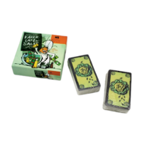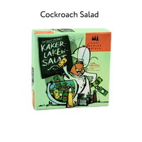 In Cockroach Salad players create a common salad packed with lettuce, peppers, tomatoes and cauliflower – but they won't always be saying which ingredient they're adding to the bowl! The 128 cards – 120 vegetable cards in the four types and eight "taboo" vegetable cards, two of each type that bear cockroaches – are shuffled and divided among the players. On a turn, a player plays the top card from his deck onto the central pile of cards, naming the vegetable as he plays it, e.g., "Pepper!" – except in the following situations: • If his vegetable matches the previously played vegetable, the player must lie. • If his vegetable matches the claim made by the previous player (perhaps because that player lied), then the player must lie. • If he plays a taboo card, he shouts "Cockroach!" and the next player starts a new pile next to the first one so that the taboo card remains visible. • If his vegetable matches a visible taboo card, he must lie. Make a mistake or stumble or hesitate too long, and a player must pick up all cards played to that point in the game. The first player to run out of cards wins!