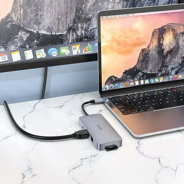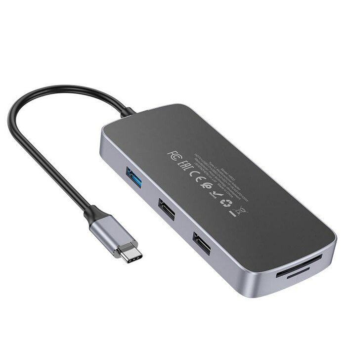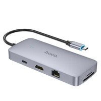 Converter Type-C to HDMI+VGA+PD+SD+TF+RJ45 Hoco HB32 HUB 8in1