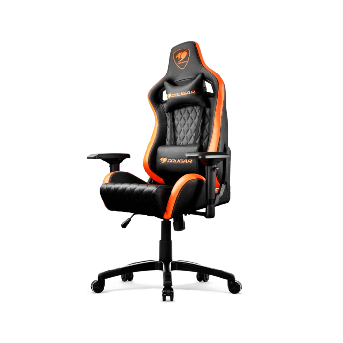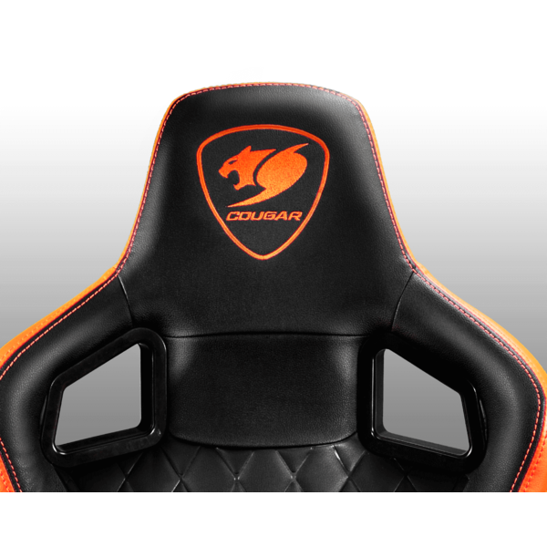 Gaming chair / Adjustable Design / Black-Orange. COUGAR Armor S has been designed for those who want not only superb comfort but also a set of luxury features that bring their gaming experience to a new level. With premium PVC leather, a high-density special foam and a unique diamond check pattern, this gaming throne is fit for the kings of the online arenas.