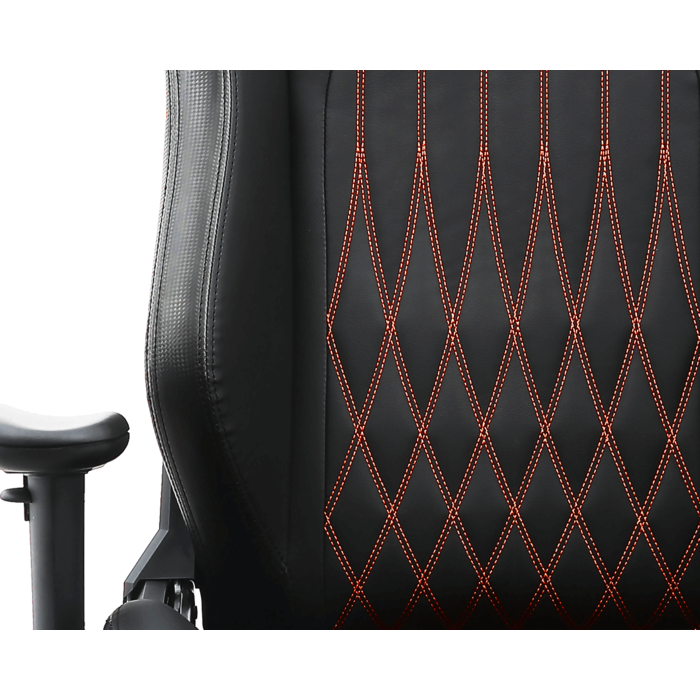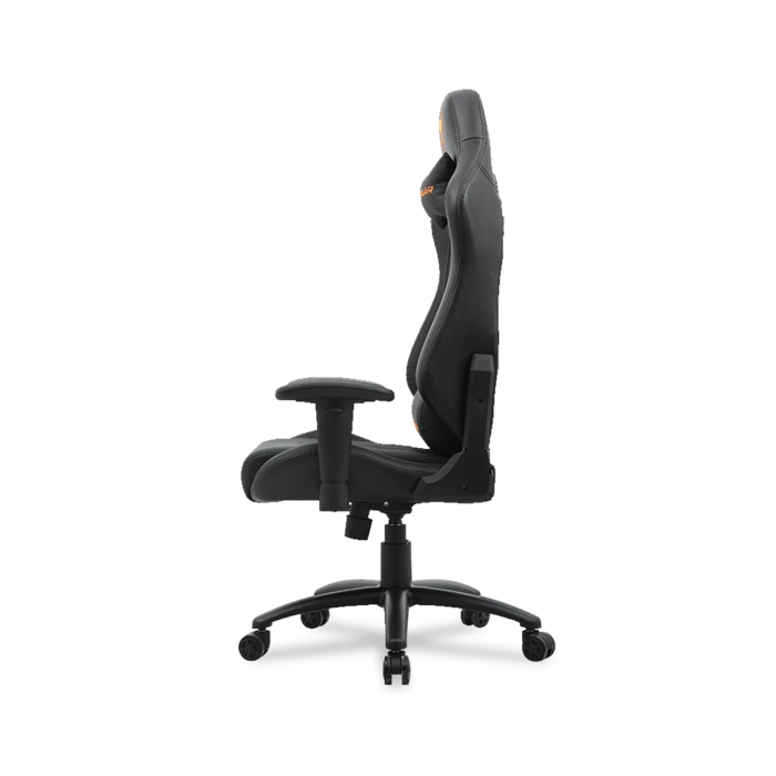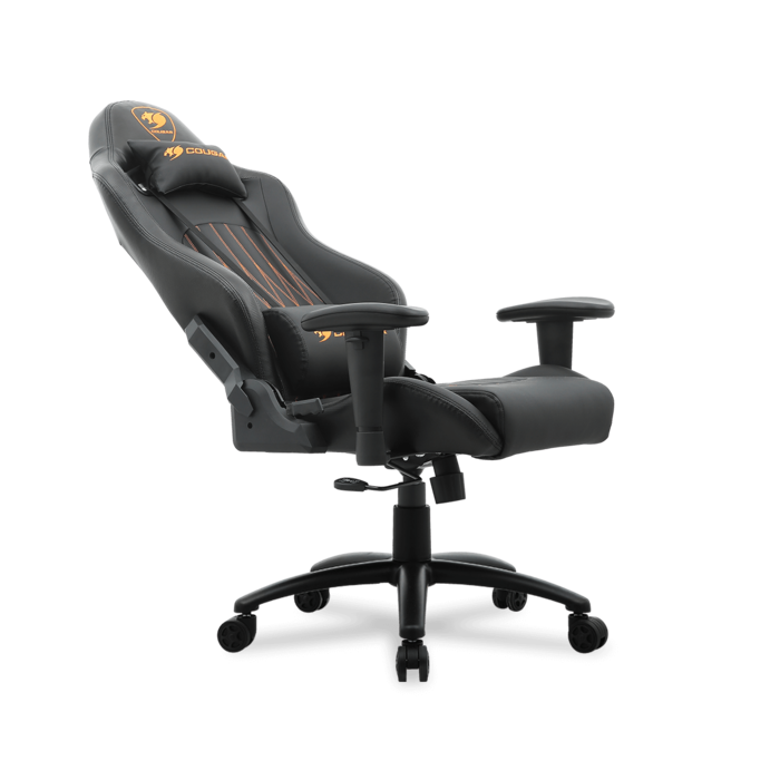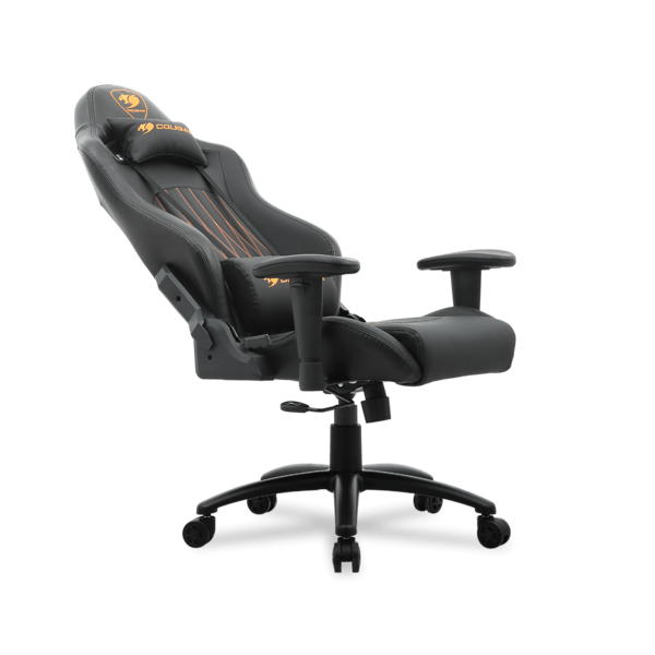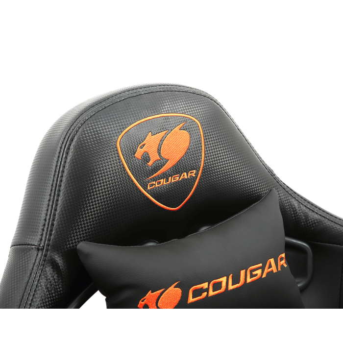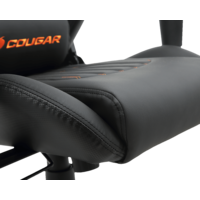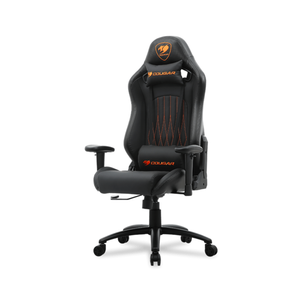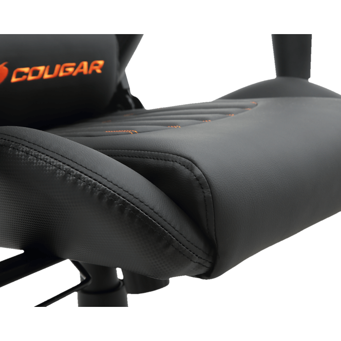 Gaming Chair / Black and Orange. COUGAR EXPLORE gaming chair perfectly meets the needs of professional gamers with a combination of comfort and durability. The steel frame, metal base, reclining backrest, breathable leather, delicate embroidery as well as ergonomic-designed armrest easily have you find your most comfortable position. Come and explore the game and greet every battle to win!