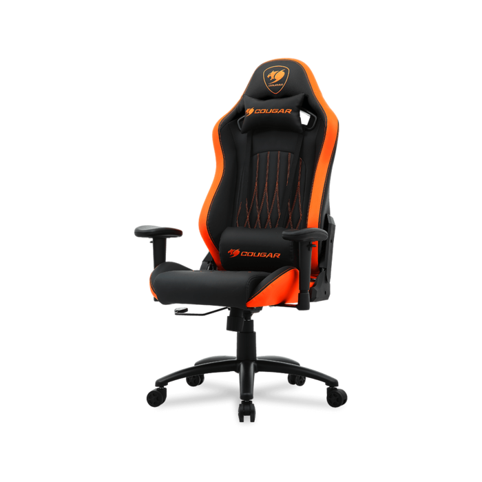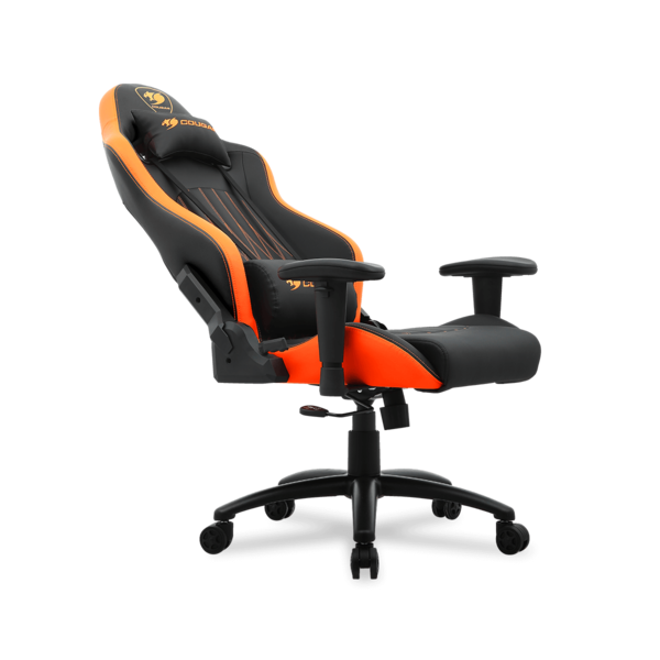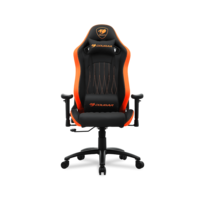 Gaming Chair / Black and Orange. COUGAR EXPLORE gaming chair perfectly meets the needs of professional gamers with a combination of comfort and durability. The steel frame, metal base, reclining backrest, breathable leather, delicate embroidery as well as ergonomic-designed armrest easily have you find your most comfortable position. Come and explore the game and greet every battle to win!