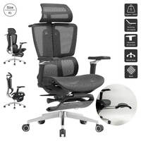 Modern ergonomic mesh office chair featuring an aluminum frame, height-adjustable full-size backrest with 3D headrest and cloth hanger, nylon mesh seat and back, and advanced 5D adjustable armrests with soft PU pads. It includes a BIFMA Class 3 gas lift and multi-functional tilt/recline
