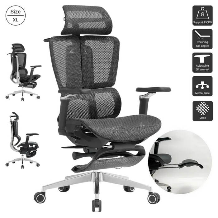 - 5D adjustable armrests with soft PU padding : Customize height, depth, pivot, lateral movement, and angle of the armrests to perfectly match your ergonomic needs.