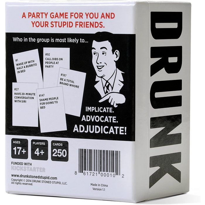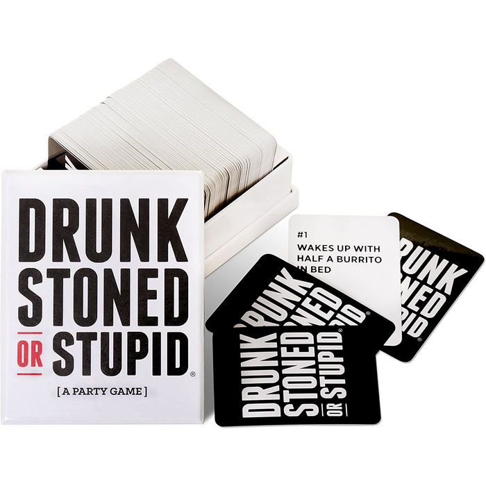 4 Players | 17+ Drunk Stoned or Stupid is a party game where in each round a card is drawn and the group decides who in the group should be tagged with the card.