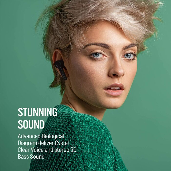 Smart Touch Control: Simply tap the earbuds to play/pause music or answer in-coming call, the smart touch control upgraded the multifunction button to avoid pressure in ear when securing fit.