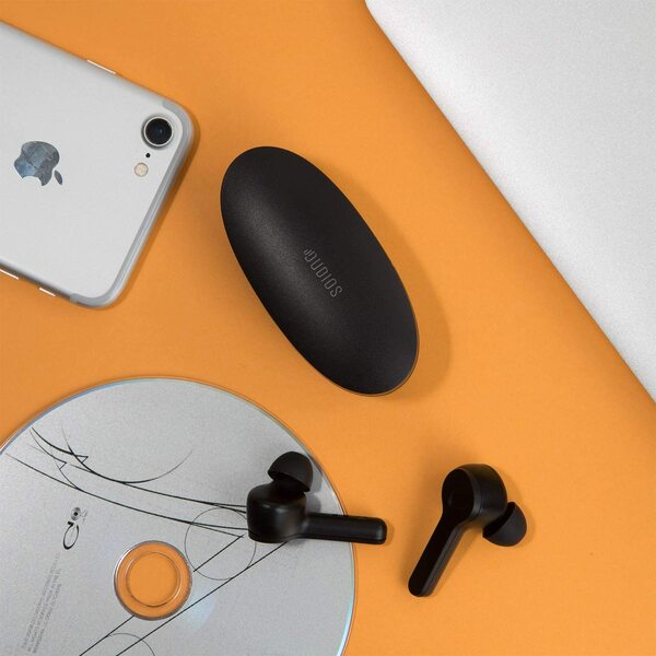 24 Hours Playtime: Don't worry about low battery anymore. Dudios premium battery techonology powers for 4 hours non-stop listening. With 650 mah portable charging case, playtime get boosted to whopping 24 hrs. The improved case cover design ensures charging and storaging convenience.