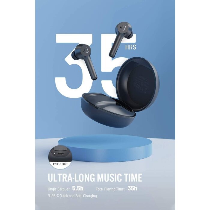Total 35 Hours Playback & USB-C Quick Charge: Dudios T8 earbuds with microphone can work for 5.5 hours on a single charge, and portable charging case will extend the playback to [35 hours]. [USB-C quick charge] allow you to get 1 hour of playtime with charge for 10 minutes when you are in a rush. Indicator light on the case let you know how many uses left.
