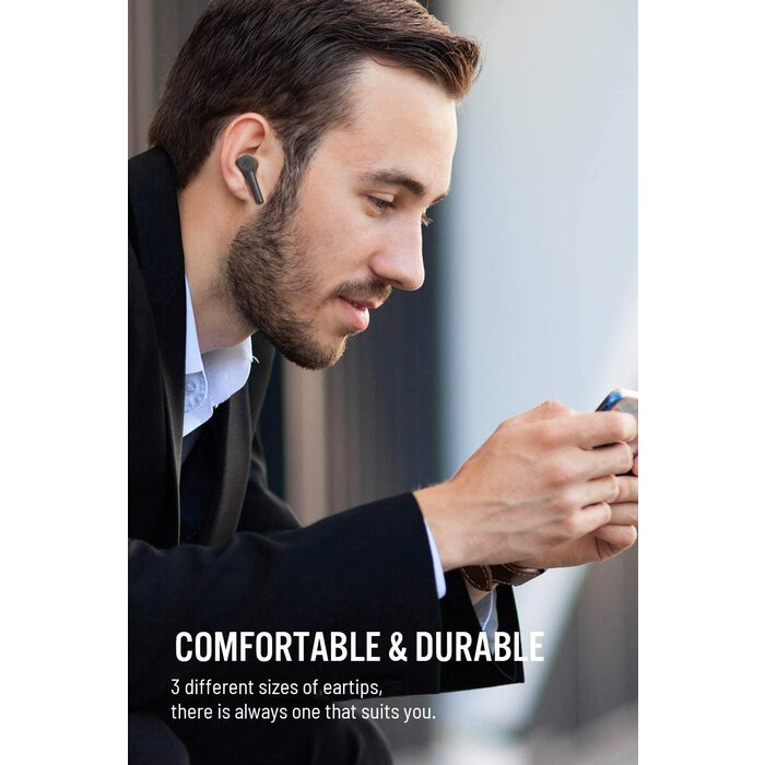 Immersive Sound Quality: Noise cancelling earbuds with 6mm expertly tuned drivers which delivers well-balanced mids and bass, enables you to immerse yourself in a music world. 3 Sizes of eartips included help you get the comfortable fit and improve your listening experience accordingly. Especially suitable for zoom meetings.