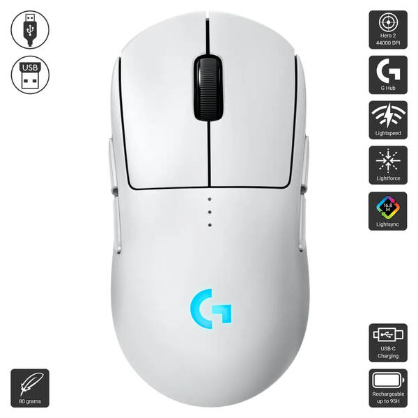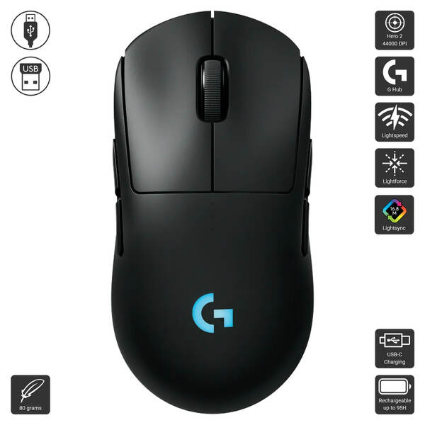 Designed with pros and engineered to win, the Logitech G PRO 2 LIGHTSPEED wireless mouse is a symmetric, ambidextrous mouse with customizable magnetic side buttons that delivers ultra-fast, precise performance and customizable style for competitive gamers.