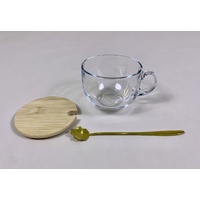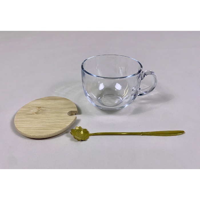 Glass Cup w/Lid & Gold Spoon Dia.10.7xH9cm