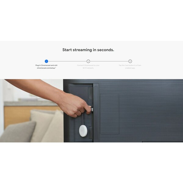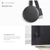 Chromecast remains one of the best value products in streaming video. All together now you can watch movies, shows, live TV, YouTube, and photos streaming on your TV from all your family's devices. Stream from your phone to TV Plug Chromecast into the HDMI port on your TV to power and stream your favorite entertainment right from your phone with just a tap. Watch shows, listen to playlists, and more. And while streaming, you can still use your phone as you normally do. Works with the streaming apps you know and love. Enjoy TV shows, movies, videos, songs, games, sports, and more from over 2000 apps like Netflix, YouTube, YouTube TV, and HBO NOW. Upgrade your TV for less. Start streaming with just your voice. Just say what you want to watch from compatible apps and control your TV hands-free with Chromecast and Google Home working seamlessly together. Ex: "Ok Google, play Stranger Things from Netflix on my living room TV.” Expand your home entertainment without buying a new TV. It's so affordable you can get one for every TV in the house. High-speed wireless connectivity Built-in 802.11ac. Wi-Fi connects to the Internet through your wireless home network (wireless router required and sold separately). Compatible with your existing HDTV Easily connects to high-definition televisions with HDMI connectivity. Subscriptions are required to view some content. Google Home, Chromecast, and compatible content required to cast to a TV using Google Home. Web-based services and content require high-speed Internet service. Some services may require a subscription.