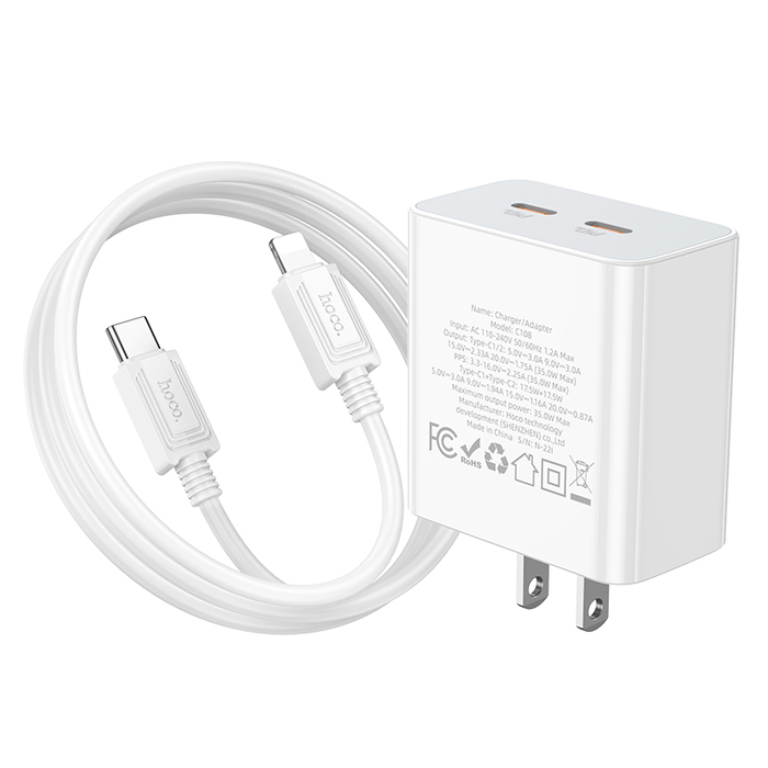 HOCO C108 Power Charger PD35W 2 Ports Set PD (C to IP) (BC9180)