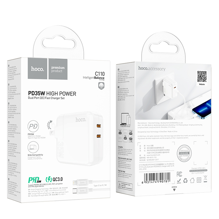 HOCO C110 Power Charger 2 Ports PD35W Set (C to iP) (BC9162)