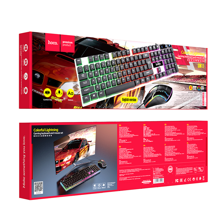 ក្តារចុច និងម៉ៅឈុតហ្គេម Hoco GM11 ភ្លើងពណ៌
