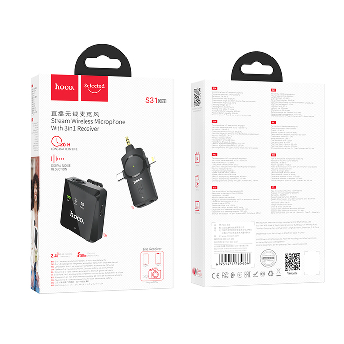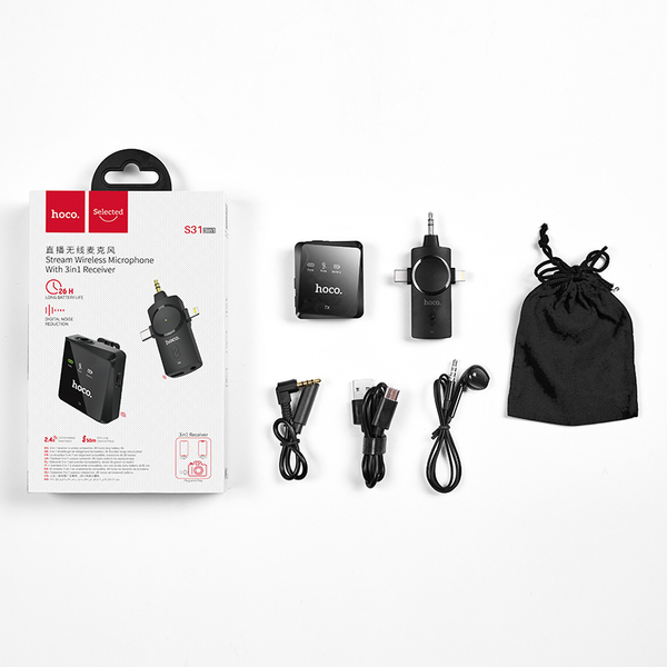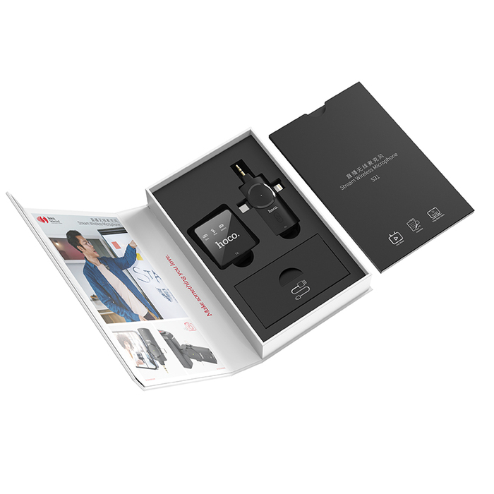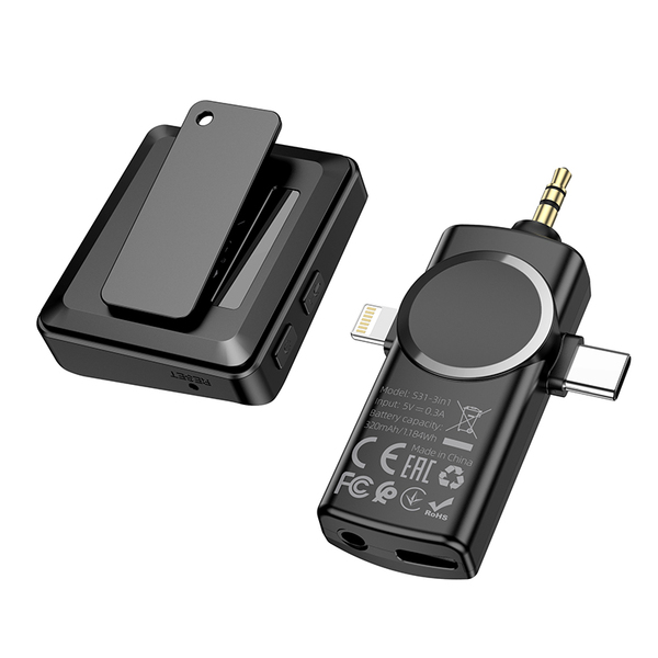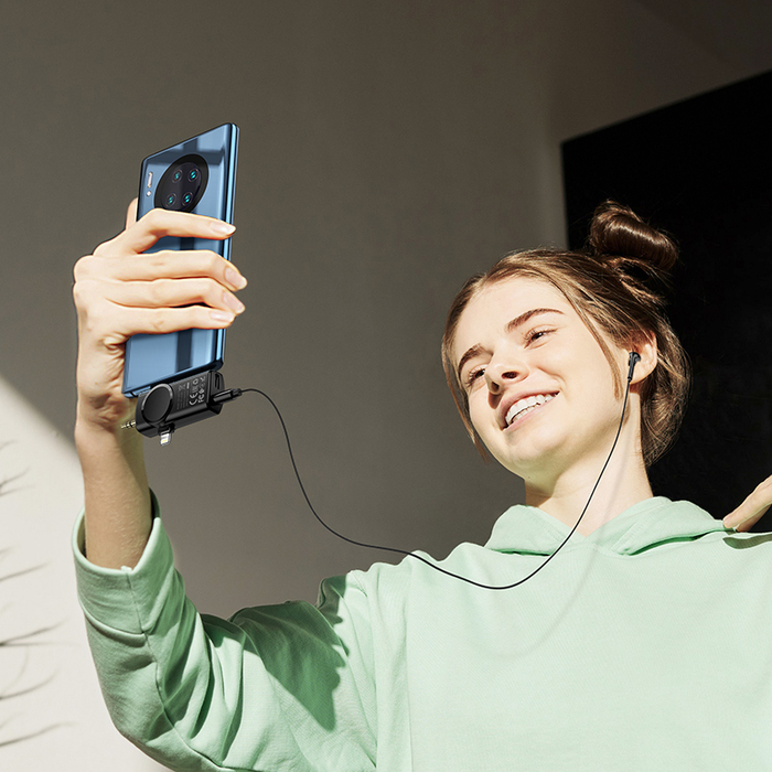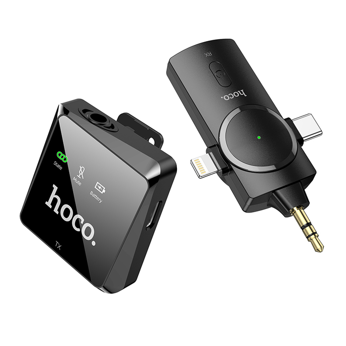 - Receiver Plug: Lightning digital plug + Type-C digital plug + camera MIC3.5 plug (compatible with most Apple mobile phones, Type-C mobile phones and SLR cameras on the market)