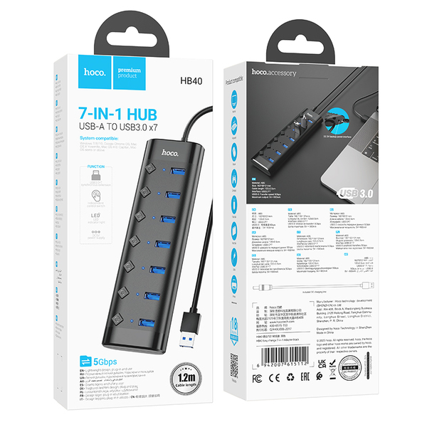 HUB Converter USB to 7 USB3.0 Hoco HB40 10073