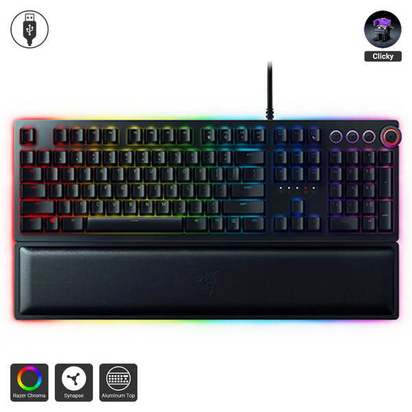 Razer Huntsman Elite Gaming Keyboard: Fast Keyboard Switches - Clicky Optical Switches - Chroma RGB Lighting - Magnetic Plush Wrist Rest - Dedicated Media Keys & Dial - Classic Black