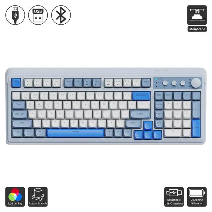 K01 Gaming Keyboard 2.4g/Usb/Bluetooth Tri Mode Wireless 99 Key No Charge Silicone Keycaps Support Connection Of 5 Devices