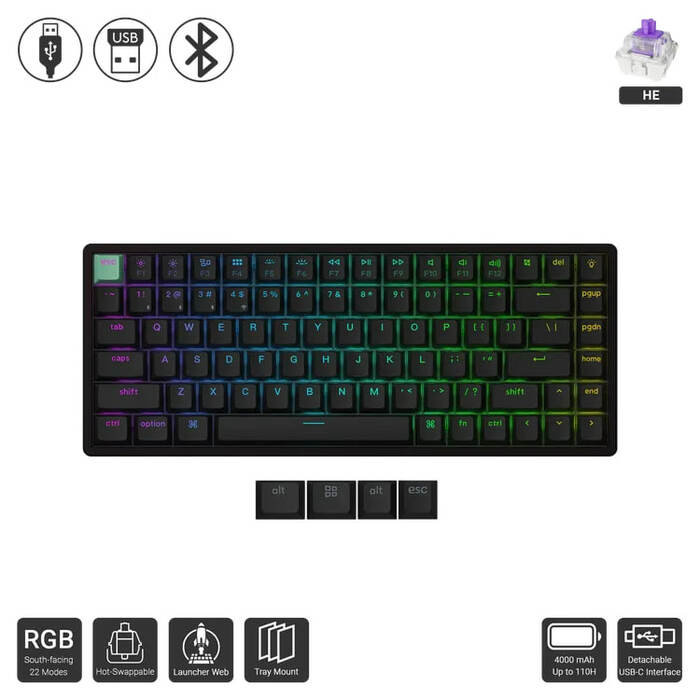 A fully customizable 75% layout wireless keyboard with magnetic switches — a breakthrough in switch technology, which—instead of physical contacts—uses magnetic sensors to measure actuation depth, putting you in total control over the response of each and every switch.