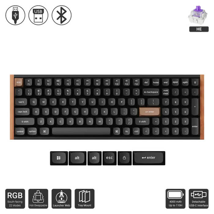 A fully customizable 96% layout wireless keyboard with magnetic switches — a breakthrough in switch technology, which—instead of physical contacts—uses magnetic sensors to measure actuation depth, putting you in total control over the response of each and every switch.