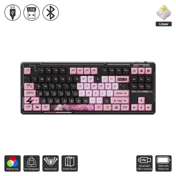 - Anime-Themed Design: Often comes with themed keycaps, such as anime girl designs, appealing to fans of personalized or artistic setups.