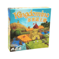 "Build a kingdom with varied terrains on domino-shaped tiles in this fast family game. 2-4 Players | 15 min | Age 8+. In Kingdomino, you are a lord seeking new lands in which to expand your kingdom. You must explore all the lands, including wheat fields, lakes, and mountains, in order to spot the best plots, while competing with other lords to acquire them first. The game uses tiles with two sections, similar to Dominoes. Each turn, each player will select a new domino to connect to their existing kingdom, making sure at least one of its sides connects to a matching terrain type already in play. The order of who picks first depends on which tile was previously chosen, with better tiles forcing players to pick later in the next round. The game ends when each player has completed a 5x5 grid (or failed to do so), and points are counted based on number of connecting tiles and valuable crown symbols. (With English instruction)"