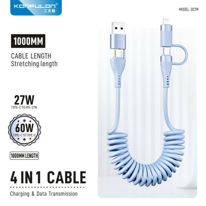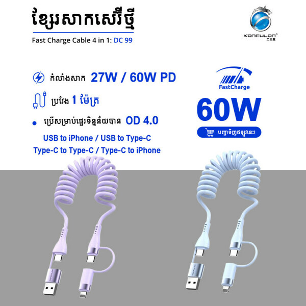 Konfulon ខ្សែរសាក 4in1 កម្លាំង60W PD/USB ទៅ Type-C/Lighting model:DC99