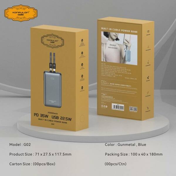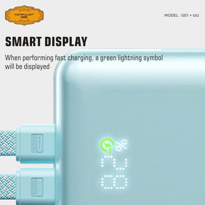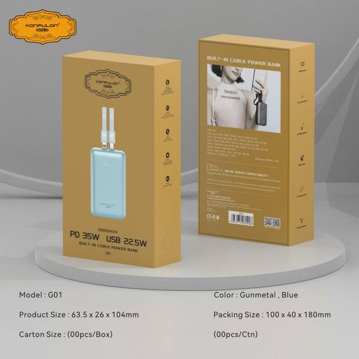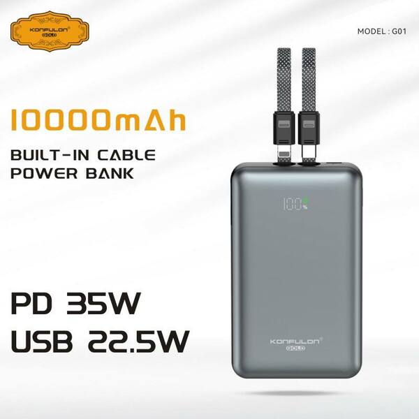 Konfulon Gold ថ្មជំនួយទំហំថ្ម 10000mAh កម្លាំងសាកលឿនបានដល់ 35W ម៉ូដែល : G01