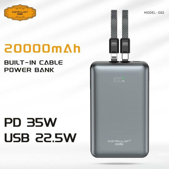 Konfulon Gold ថ្មជំនួយទំហំថ្ម 20000mAh កម្លាំងសាកលឿនបានដល់ 35W ម៉ូដែល : G02