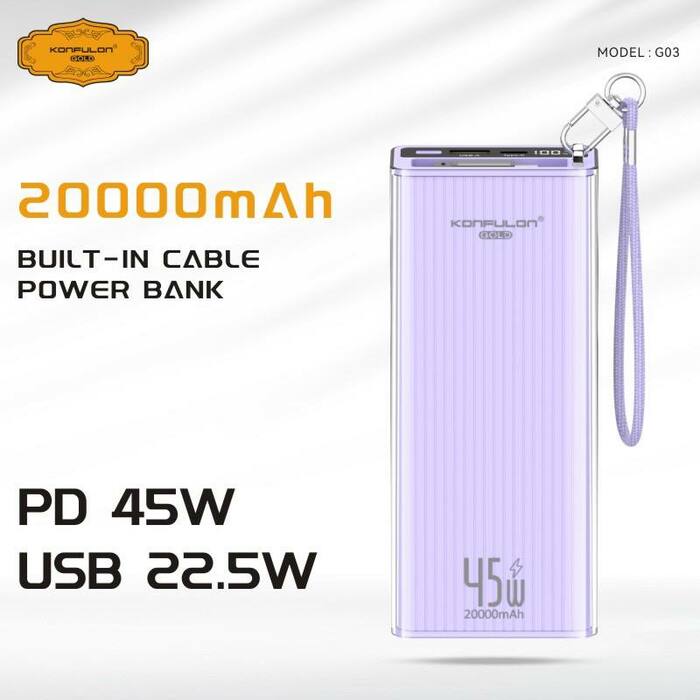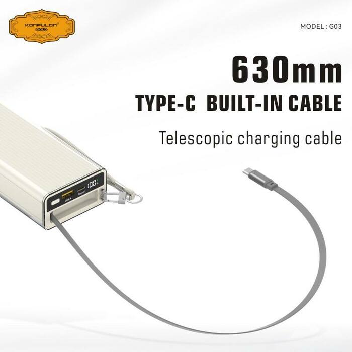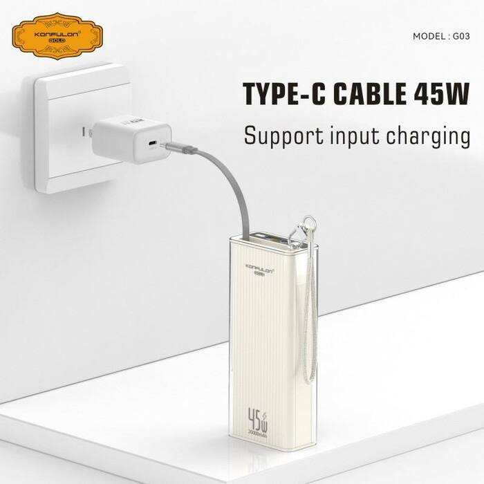Konfulon Gold ថ្មជំនួយទំហំថ្ម 20000mAh កម្លាំងសាកលឿនបានដល់ 45W ម៉ូដែល : G03