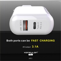 Konfulon JoKo Charger Adapter Support Fast-Charger QC 3.0 + PD 20W Model JK61 24W