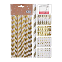 KOOPMAN 170451250 Drinking Straws Paper Gold Foil Print