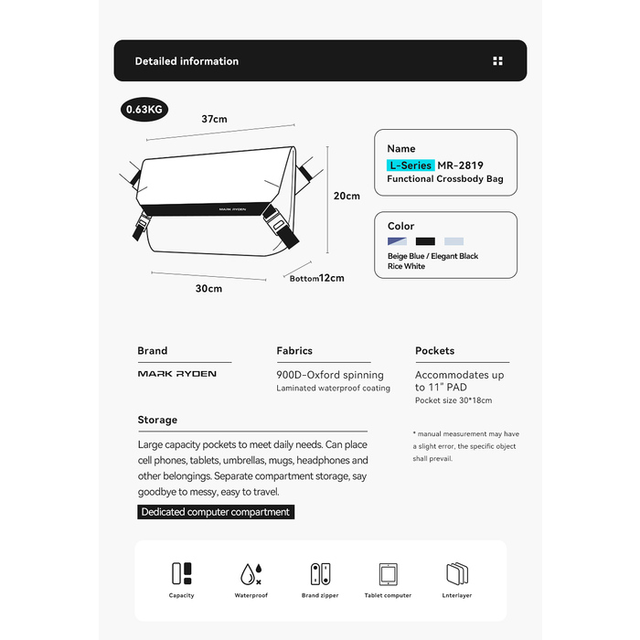 [CODE-ABQ51] Large Capacity Tide Messenger - Grey Blue