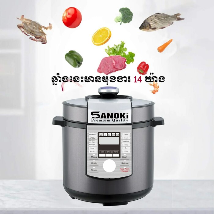 ឆ្នាំងបាយបញ្ចុះជាតិស្ករ 14មុខ។ ផលិតផលពីប្រទេសជប៉ុន SANOKi 6L សន្សំសំចៃពេលបាន 70% ដាំបាយបញ្ចុះជាតិស្ករបាន 2កម្រិត។ ដាំបាយមិនជាប់បាតឆ្នាំង ងាយស្រួលលាងសម្អាត ឆ្នាំងក្រាសល្អ ទម្ងន់សរុប 6KG មានបណ្ណធានាជូន 12ខែ។ ដាំស្លបានទឹកចំណុះ 6លីត្រ ដាំបាយធម្មតាបាន 12កំប៉ុងជ័រ (6កំប៉ុងទឹកដោះគោ)។ ដាំបាយកាត់បន្ថយជាតិស្ករ បាន 5កំប៉ុងជ័រ (2,5កំប៉ុងទឹកដោះគោ)